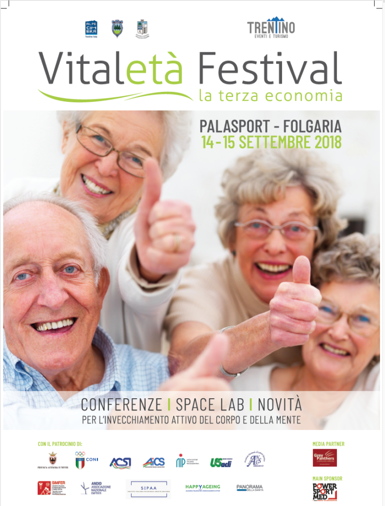 Per questo motivo le maggiori associazioni nazionali di promozione sportiva, culturale e sociale (CONI, ACSI, AICS e USAcli) hanno aderito e sostenuto la proposta di un evento di respiro nazionale dedicato a questo mondo. Stiamo parlando di Vitaletà Festival, organizzato all’interno del Vitaletà Meeting Salute e Benessere (9-18 settembre 2018) che vede la partecipazione di oltre 400 persone provenienti da varie regioni d’Italia, appartenenti a Università della Terza Età, circoli e associazioni sportive, ricreative, culturali. Una manifestazione- vacanza ideata e gestita da “Trentino Eventi e Turismo”, indirizzata alla terza età attiva.
