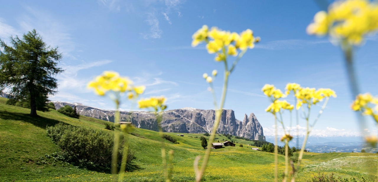 Sul pendio della montagna sopra Castelrotto, è percepibile da tutti la sensazione di libertà che si prova in montagna, di fronte a uno scenario maestoso, con il mondo alpino davanti agli occhi