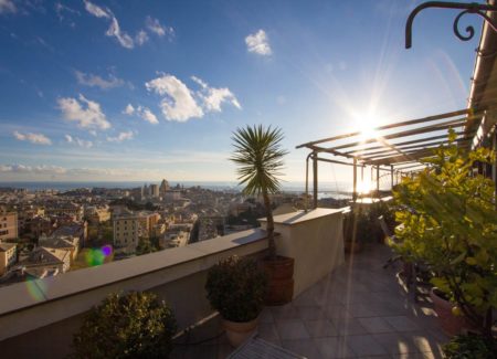 Una struttura completamente rinnovata negli interni, nel quartiere di Castelletto, a Genova, con una meravigliosa vista sul mare oltre i tetti del centro storico.