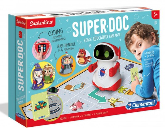 SUPER DOC ROBOTTINO EDUCATIVO PARLANTE– Nella prima modalità, il Robot può essere programmato liberamente o utilizzando le carte da gioco, che suggeriscono semplici associazioni logiche, per divertenti sfide a due. Nella seconda modalità, Super Doc interpreta quattro personaggi.PER BAMBINI DAI 5 ANNI– PREZZO:34,90€