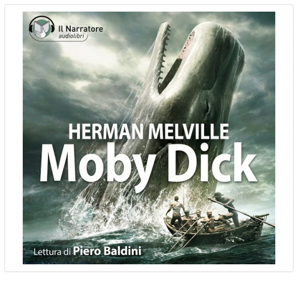 Poiché il romanzo di Melville è enciclopedico e allo stesso tempo fortemente digressivo, la lettura non può che essere accompagnata dall’interpretazione, in quanto l’autore utilizza un gran numero di citazioni di storie epiche, passaggi di chiara ispirazione shakespeariana e biblica. L’ascolto/lettura di Moby Dick provoca un forte senso di disorientamento, analogo al sentirsi smarrito nelle profonde oscurità dell’oceano. La straordinaria lettura che ne fa l’attore Piero Baldini è il risultato di uno studio in profondità, fin nei minuti dettagli, della scrittura melvilliana e la sua voce, davanti al microfono, diventa Arte della Lettura ad Alta Voce, ‘strumento musicale’ capace di rendere tutte le note, i timbri, il ritmo e i significati di questo romanzo immortale. Il romanzo è stato integralmente ritradotto da Alberto Rossatti per il Narratore audiolibri con un’attenzione particolare alle esigenze della musicalità e dicibilità di un testo che per lo più presenta la densità della scrittura poetica.