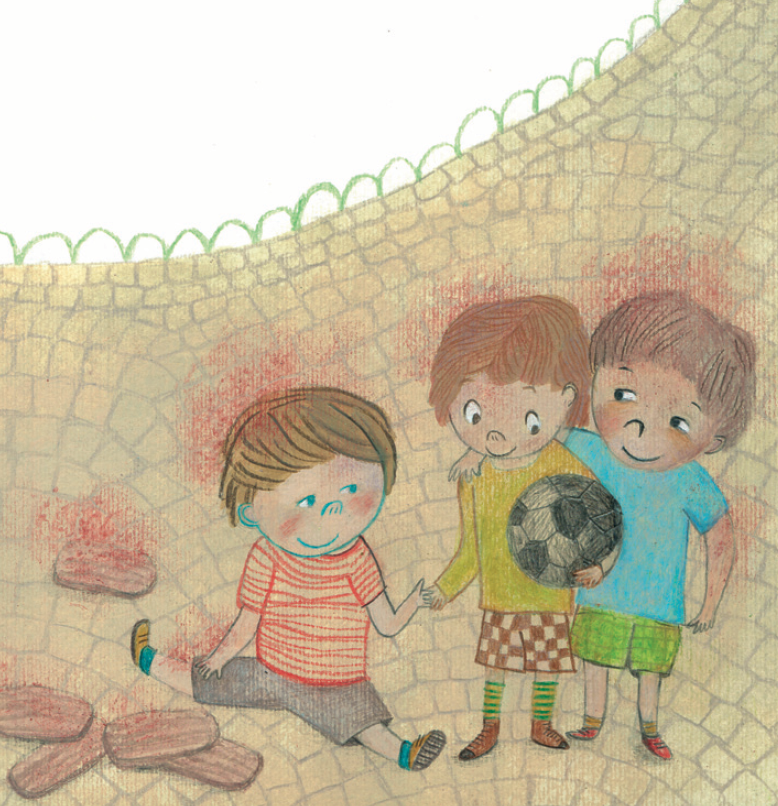 Un giorno, mentre un gruppo di bambini giocava a palla in un giardino vicino alla piazza, arrivò di sorpresa il tanto temuto galletto Andreino. Spaventati, i bambini cercarono di scappare correndo di qua e di là, ma con un balzo il terribile galletto si avvicinò a loro, la sua cresta si illuminò all’improvviso e da lì partì un raggio di polvere di cacao che immobilizzò i bambini e li trasformò in tanti piccoli biscotti.