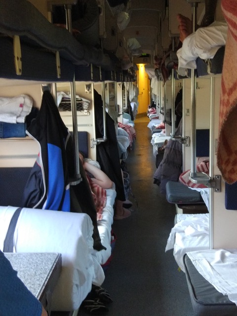 Domenica mattina ho lasciato Novosibirsk per raggiungere dopo un viaggio di trentaquattro ore, Irkutst e il Baikal. Per carenza di disponibilità questa volta sapevo che avrei viaggiato in terza classe. Nei treni russi la terza classe corrisponde a un vagone con cinquantaquattro posti letto organizzati in nove gruppi; praticamente un lungo corridoio senza divisori, con settori da sei posti: quattro da una parte e due dall’altra. A fondo carrozza vi è una toilette e nel vagone vige una perenne illuminazione, attenuata solamente dopo le ventidue. Poco male, pure questa sarebbe stata una esperienza, però avendo il sonno leggero mi domandavo se e quanto sarei riuscito a dormire. Cosi arrivato al binario dove attendeva il treno con destinazione Vladivostock, ho chiesto se era possibile fare l’upgrade in seconda classe. Avendo ricevuto solo risposte negative, ho desistito facendo buon viso a cattiva sorte. Le ore del pomeriggio sono passate leggiucchiando, curiosando gli altri passeggeri, finché infine mi sono sistemato per la notte. Ma il