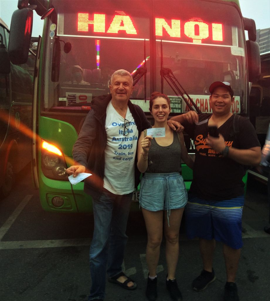 Ultimo giorno in Cina, partenza da Kunming alle sei del mattino, ressa di passeggeri e offerta straripante di fritti e noodles, uno stordimento! Stazione controllata non solo dalla polizia ma dall’esercito con delle torrette. Qui nel 2014 c’è stato un sanguinoso attacco terroristico: ventinove morti accoltellati. Treno che sale tra bellissime montagne e piantagioni di ananas. Arrivo alla stazione di Heiko, l’ultima in Cina e taxi per la frontiera; poi a piedi sul ponte che divide le due nazioni. Entrare in Vietnam è stato facile, poche domande e via col visto. Di corsa un ottimo bus per Hanoi con partenza dopo mezz’ora, addirittura con WIFI. Purtroppo sarà solo una piacevole eccezione in Vietnam, il resto sarà un incubo. Dopo quattro ore arrivo nella periferia della capitale in mezzo al traffico feroce e da lì un’altra oretta per l’ostello. Prima cena vietnamita e riconosco i posti dove ero stato diverse volte quando ero a Hanoi per lavoro. Due giorni dopo incontro Gabriella e mio genero Peter venuti dall’Australia per unirsi nella discesa verso Saigon. Un’anticipazione di quando ci vedremo in Australia.