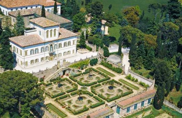 Villa Caprile risale al 1640. Qui, su tre terrazzi affacciati sulla città dal Monte San Bartolo, giochi d’acqua da siepi e vasi monumentali, un pomario e un roseto di rose antiche