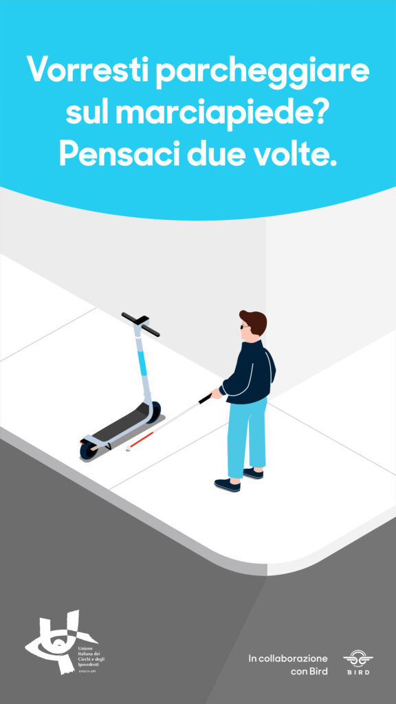 L’idea parte da Milano, ma possiamo farla nostra e adottarla in ogni città: grazie alla collaborazione tra un’azienda leader nel settore dei monopattini elettrici (Bird), e l’Unione Italiana Ciechi e Ipovedenti di Milano è avviata in città la campagna di sensibilizzazione sul parcheggio corretto dei monopattini. Un’iniziativa che unisce micro mobilità e diritti con l’obiettivo di diffondere una cultura di maggior rispetto di tutte le persone.