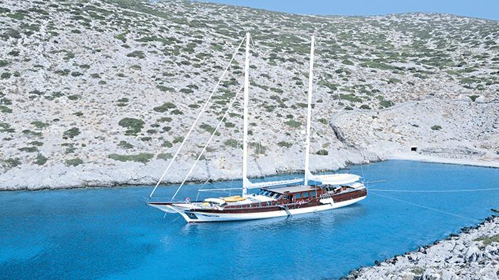 La nostra prima crociera ci porta a Orak Island, appena a sud di Bodrum. Qui, nuoteremo, ci rilasseremo e avremo l’opportunità di visitare le rovine del villaggio bizantino. Dopo pranzo, navigheremo lungo la Baia di Cokertme. Ceneremo e passeremo la notte a Cokertme.