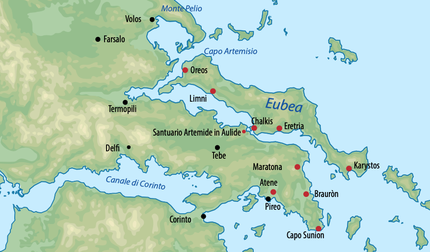 Un grande patrimonio di miti e di leggende divenne comune a tutto il Mediterraneo proprio grazie ai naviganti euboici. Persino l’alfabeto greco, quale che sia stato il luogo e il contesto della geniale ‘invenzione’ che lo rimodellò su quello fenicio, è stato introdotto in Italia dai navigatori eubei dell’8° secolo e trasmesso da principio agli Etruschi. Poi c’è il resto, il molto resto. Le Guerre Persiane, la battaglia di Capo Artemisio e della non lontana Maratona. Quindi la Guerra del Peloponneso, Roma, Bisanzio, Venezia, gli Ottomani.
