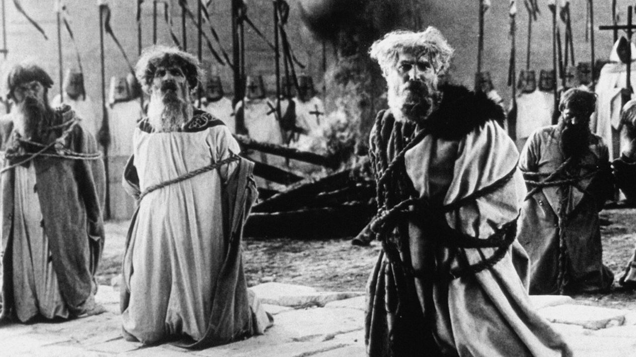 È in questa non certo invidiabile situazione che gli viene offerta la possibilità di tornare dietro la macchina presa. Per evitare rischi gli si impone come soggetto la biografia di un principe russo del XIII secolo, Aleksandr Nevskij, che, per un breve periodo, era riuscito a liberare le pianure comprese tra il Baltico e il Don dalla dominazione mongola e che era riuscito, soprattutto, a fermare l’espansione verso Est dei Cavalieri Teutonici e Portaspada nella battaglia sul lago ghiacciato Pejpus avvenuta il 5 aprile 1242. Quando un esercito raccogliticcio e male armato di fanti aveva battuto la più poderosa e terrificante macchina bellica dell’epoca che, fino a quel momento, sotto le insegne della croce nera, aveva seminato sangue e distruzione tra i popoli slavi. Per limitare ulteriormente i danni, i burocrati affiancano a Ejzenstejn, come aiuto registi (in realtà come “controllori”), proprio i Vasiliev di Ciapaiev. Ejzenstejn accetta e si adatta alle direttive, ossia lascia mano libera ai suoi “assistenti” nell’impostazione generale dell’opera. Il principe Nevskij diventa così un precursore del piccolo padre, uno Stalin medievale che libera Novgorod a furor di popolo, che arringa le folle con discorsi patriottici e che compare sulla soglia della sua tenda come un’icona sacra. Il bianco e nero della fotografia è morbido, persino patinato, teso a esaltare le imprese dell’eroe cui fanno da contraltare popolaresco le smargiassate di Gavrila e Vasilij, soldati tutti d’un pezzo innamorati della stessa donna, la vergine guerriera Olga, e che per lei si buttano nelle imprese più rischiose.