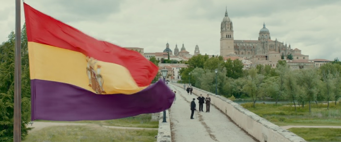 Il film si apre e si chiude con l’immagine di due bandiere che sventolano. All’inizio, in un’assolata giornata estiva, è la bandiera della Spagna repubblicana mentre quella che chiude il racconto, tra i fiocchi di neve, è la bandiera franchista su cui una didascalia avverte che il paese iberico tornò alla democrazia nel 1977, due anni dopo la morte di Francisco Franco. Di mezzo, la narrazione di come, nel 1936 ebbe inizio la Guerra Civile che portò all’instaurazione della dittatura. Il punto di vista scelto dal regista per il suo racconto di questa cruenta pagina di storia europea del ‘900 è quello di un personaggio pubblico dell’epoca, molto noto in Spagna, ma poco all’estero, a suo modo emblematico degli umori e delle contraddizioni che esplosero in maniera così eclatante dopo anni di crisi politiche e istituzionali. Il personaggio è Miguel de Unamuno, all’epoca dei fatti rettore dell’Università di Salamanca, il più antico e prestigioso ateneo spagnolo.