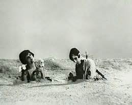 L’immagine sopra è un’inquadratura del film Il cameraman (1928) di Buster Keaton, quella sotto fa parte del finale di Un chien andalou. L’influsso di Keaton su Buñuel è evidente.