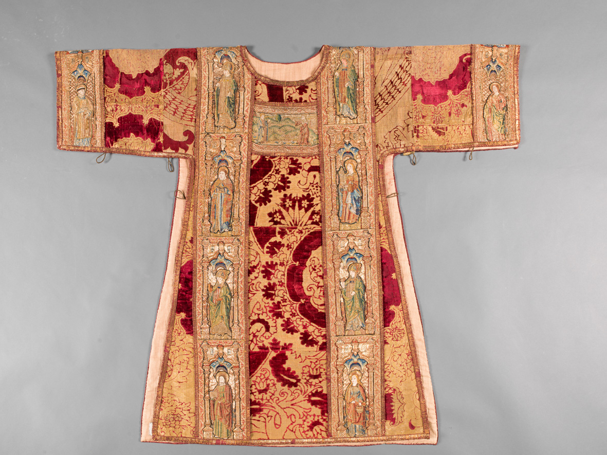 Piviali in velluto cesellato, pianete in tessuto laminato in oro e in argento filato, rarissime dalmatiche con ricami in oro,…