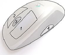 In commercio esistono MOUSE di diversi tipi, distinguibili per tipologia di rilevazione del movimento – meccanica, ottica, laser – o per modalità di connettività con la macchina distinguendosi in MOUSE con cavo o MOUSE senza filo (wireless = uairles); in generale diciamo che TUTTI i MOUSE per poter funzionare devono poggiare su di una superficie piana, quale ad esempio la nostra scrivania o il nostro tavolo di casa. Esso è dotato di uno o più tasti ai quali corrispondono varie funzioni: abbiamo un tasto SINISTRO (1), un tasto DESTRO (2) che ci dà l’accesso a delle funzioni avanzate, la ROTELLINA CENTRALE (3) e, nei MUOSE più recenti, un tasto laterale (4) al quale si possono far corrispondere specifiche funzioni scelte dall’utente. Inizialmente, quando si è neofiti si utilizza principalmente il tasto SINISTRO e quindi ogni volta che dobbiamo interagire a vario titolo con il computer – per utilizzare un pulsante, uno strumento, ‘lanciare’ un programma, aprire un link – facciamo un click proprio con questo tasto.