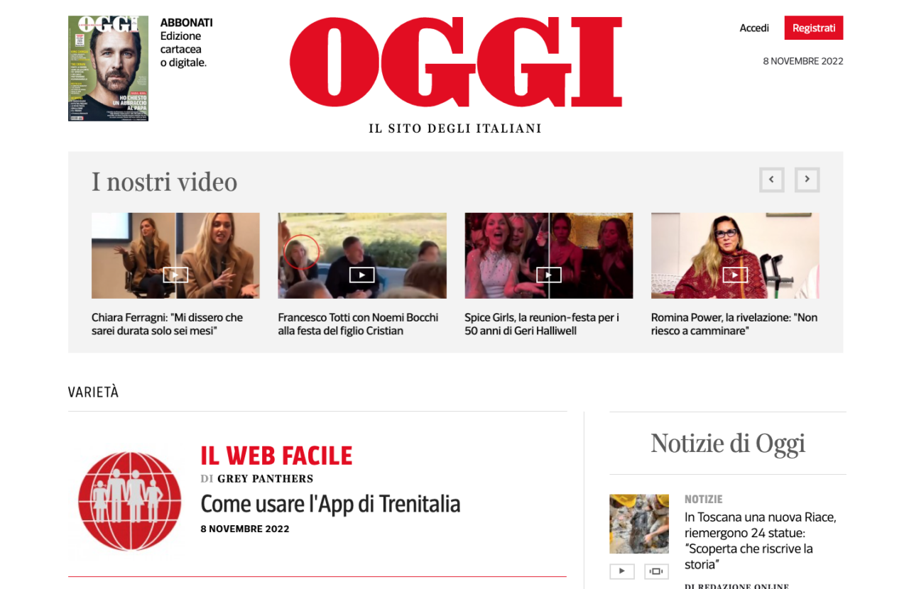 Incomincia dall’8 novembre la collaborazione tra Grey Panthers e il settimanale Oggi per diffondere la cultura digitale anche tra i più restii. La nuova rubrica, a cura della nostra redazione, si intitola Il web facile. Perchè diventare Cittadini Digitali è oggi indispensabile. E noi cerchiamo di spiegarlo in modo semplice e piacevole. E non solo ai Senior