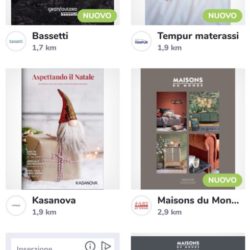 La home, chiamata vetrina, è suddivisa come segue: in alto è presente una barra nella quale si trovano tre righine di cui si è già trattato, vicino è riportato l’indirizzo e a destra è presente una lente di ingrandimento per poter cercare un prodotto specifico o un negozio. Subito sotto vi è una barra, dove sono presenti varie categorie, che è possibile scorrere per applicare dei filtri; ad esempio scorrendo e poi toccando su elettronica verranno mostrati i volantini di elettronica. All’apertura l’app mostrerà i volantini in evidenza che possono essere nuovi, in scadenza o vari. Tra la barra in alto e i volantini si trovano dentro icone circolari alcuni negozi, toccando su essi si aprirà una pagina dove sono riportati i negozi fisici sulla mappa e i volantini.