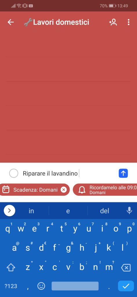 Assegnate a te: l’app ha una funzionalità di condivisione. Se un familiare o un conoscente utilizza la medesima app è possibile condividere attività da svolgere e nel caso sia a noi assegnata si troverà in questo elenco.