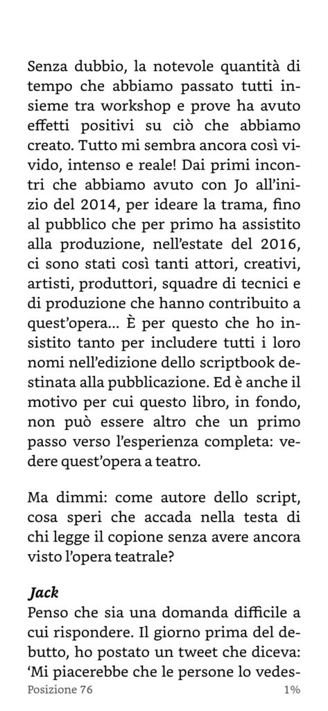 La qualità dell’immagine è ottima, durante la nostra prova abbiamo potuto apprezzare la semplicità della funzionalità zoom che permette di regolare la grandezza del testo in ogni momento durante la lettura utilizzando soltanto due dita. Con un doppio tap sulla pagina è possibile visionare a che pagina si è arrivati e la percentuale di libro letto. Un’altra funzionalità interessante permette, sempre durante la lettura, di avere una stima di tempo residuo prima di arrivare a fine capitolo o a fine libro. Infine c’è anche la possibilità di muoversi comodamente tra i capitoli dal menu laterale.