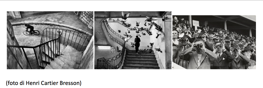 In pratica esiste una foto potenzialmente già compiuta ogni volta che il fotografo solleva l’apparecchio e inquadra la scena. In effetti, quando si scatta rapidamente, come nella fotografia di strada ( street photography), il riquadro del mirino è come un palco sul quale appare un’immagine in movimento. I suoi margini assumono allora notevole importanza, perché interagiscono con gli oggetti in continuo movimento.