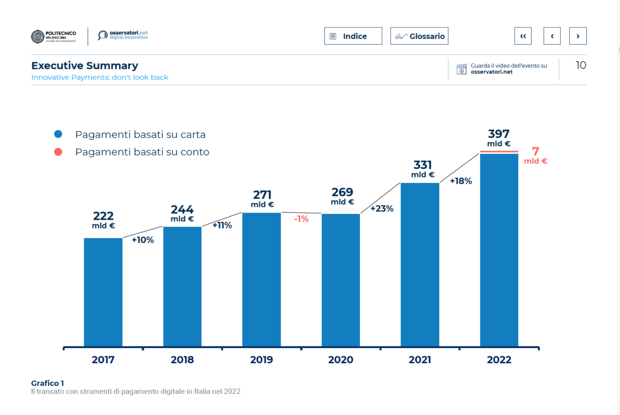 Una componente fondamentale di tale crescita è stata rappresentata, anche nel caso italiano, dai pagamenti da smartphone e da dispositivi wearable in negozio (+122% rispetto al 2021). Ce lo spiega, in questa video intervista la dottoressa Giulia Spinelli, che ha curato l’indagine per il Politecnico di Milano