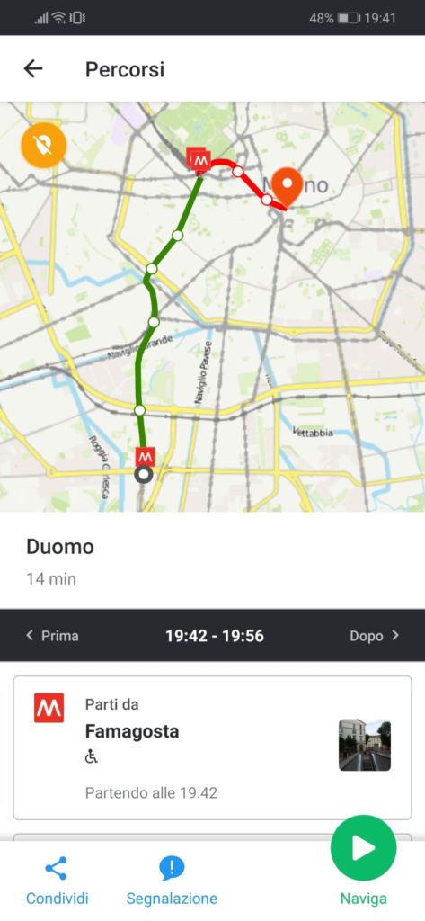 La nostra esperienza con Moovit è stata molto positiva, i tempi di attesi dei mezzi erano quasi sempre giusti; in diverse occasioni abbiamo apprezzato la segnalazione in tempo reale di rallentamenti, in modo da poter cambiare percorso. Una funzione molto utile permette di ricevere indicazioni sonore e non durante il percorso; oltre a comunicare quando girare durante i tratti a piedi, viene anche comunicato tramite vibrazione prolungata, seguita da un avviso acustico quando mancano due fermate a quella di arrivo e si viene avvertiti anche alla fermata successiva e quando scendere. Un’altra funzione che abbiamo apprezzato permette, durante la scelta del percorso, di selezionare quello con il minor tratto a piedi. Nella schermata di selezione del percorso sono indicati da una carrozzina quelli accessibili a portatori di handicap.
