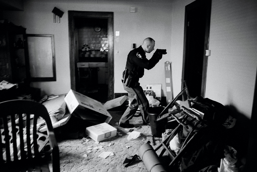 La fotografia mostra un ufficiale del Cuyahoga County Sheriff’Department che s’introduce, armato, in un’ abitazione a Cleveland, Ohio, dopo uno sfratto per un pignoramento. Gli ufficiali devono assicurarsi che in casa non vi siano armi e che gli inquilini se ne siano andati: la foto è stata scattata nel marzo 2008 e fa parte di un servizio realizzato per Time Magazine. L’intero reportage ha vinto il secondo premio nella categoria Daily Life.