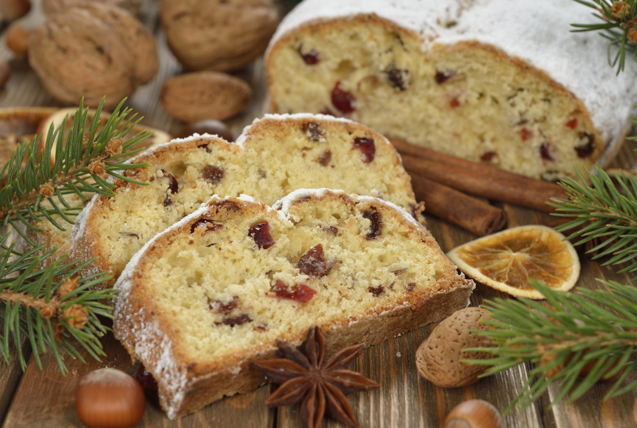 Traditional Christmas Stollen Published 10 Dicembre 2015 at 1280 × 859 in Traditional Christmas Stollen « Previous Next » Traditional Christmas Stollen on a brown background