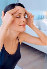Curvate gli indici appoggiandoli appena sotto le sopracciglia e appoggiate le falangi dei pollici sotto gli occhi. Spingete in su le sopracciglia e delicatamente in giu’ la pelle sotto gli occhi, mantenete questa posizione per tutta la durata dell’esercizio. Chiudete gli occhi contro la resistenza delle dita, per 6 volte.
