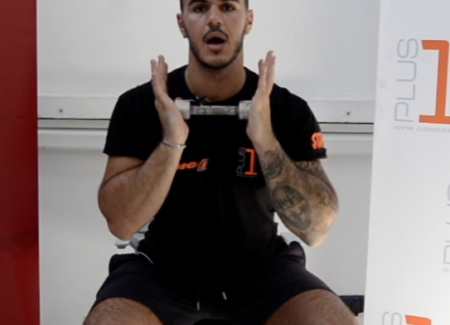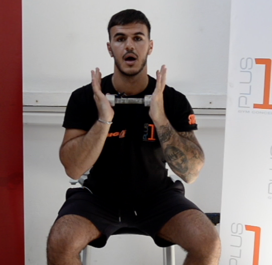 Ogni volta che dalla stazione eretta ci portiamo seduti su una sedia e poi ci rialziamo stiamo effettuando un mezzo squat. Vediamo insieme il movimenti corretto aggiungendo un manubrio da un chilo. Tutti gli esercizi di questa rubrica, infatti, si avvalgono della competenza dei professionisti della palestra Plus 1 Gym Concept di Milano.