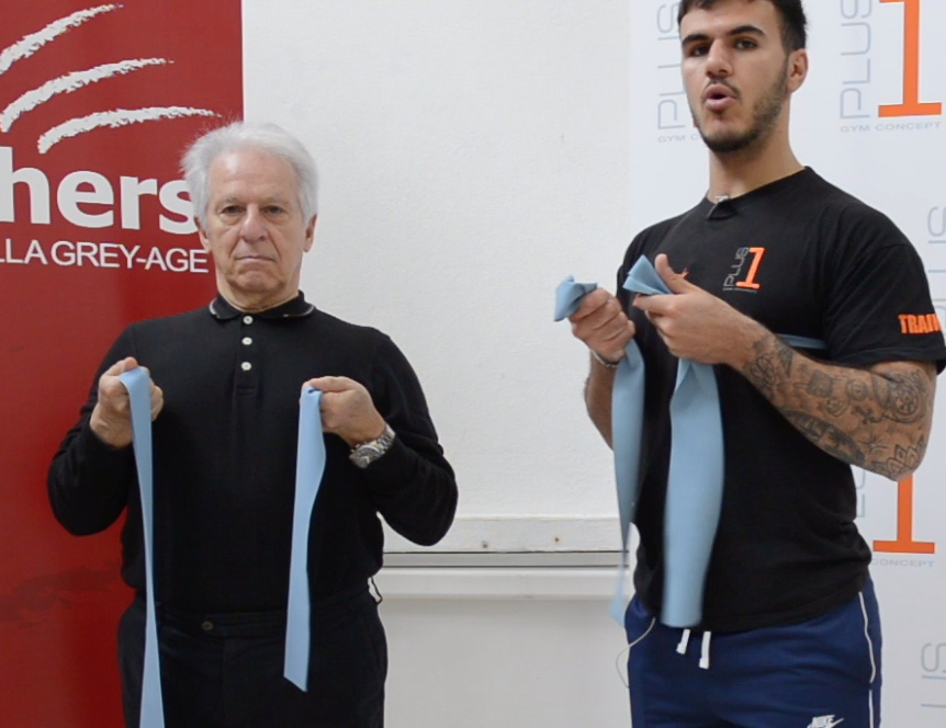Introduciamo, questa settimana, gli elastici, che hanno caratteristiche e resistenze diverse. Scegliete quello che vi costringe a uno sforzo, ma senza esagerare. Ormai lo sapete, tutti gli esercizi di questa rubrica sono studiati dai professionisti della Palestra Plus 1 Gym Concept di Milano,