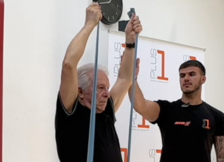 Rivediamo insieme dei movimenti già eseguiti per la mobilità delle spalle e delle braccia, eseguendoli con l’aiuto degli elastici. Nulla poi è affidato al caso: tutti gli esercizi di questa rubrica, infatti, si avvalgono della competenza dei professionisti della palestra Plus 1 Gym Concept di Milano.
