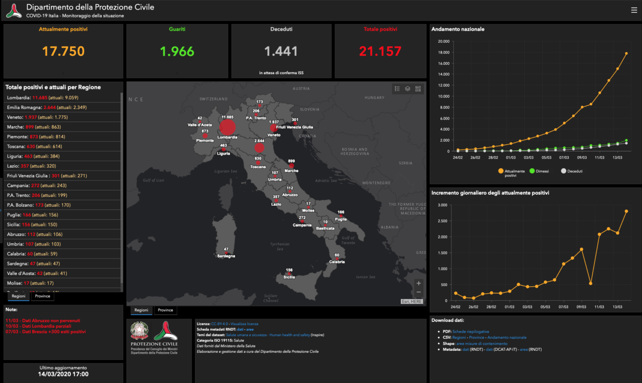 Per avere tutte le ultime informazioni sulla diffusione del virus, ci si può collegare a questo sito del Ministero della Salute , dove grafici e mappe sono interattiva e forniscono molte possibilità di recuperare informazioni